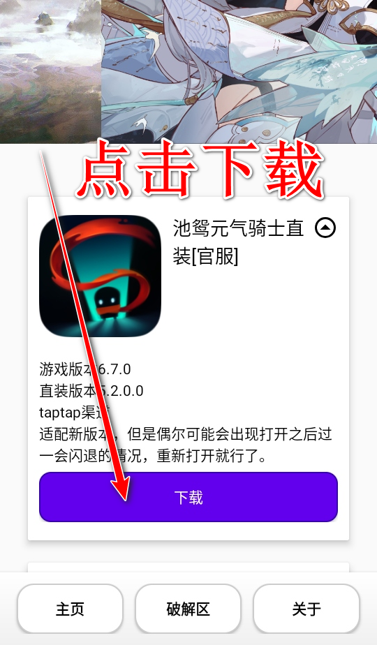 1. 开启池鸳启动插件App,于首页轻点池鸳元气骑士直装。