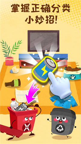 5、进行模拟清扫,帮助小玩家将房间内的垃圾进行分类、整理。