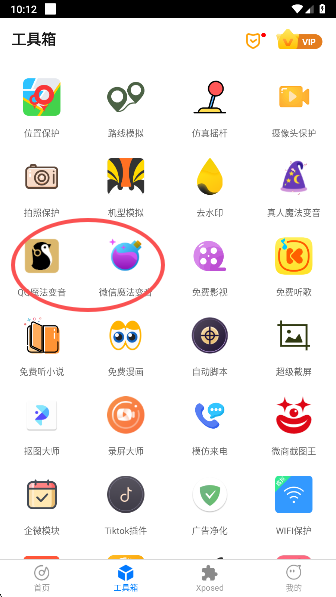 接着在比翼多开中,点击底部的“工具箱”,随后点击“虚拟定位”。