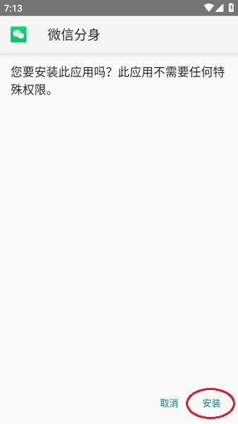 只需直接点击“安装”,安装完成后,桌面上便会出现“微信分身”应用。