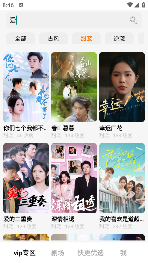 1、打开软件进入到专区可以看到各种题材的短剧