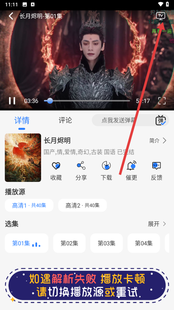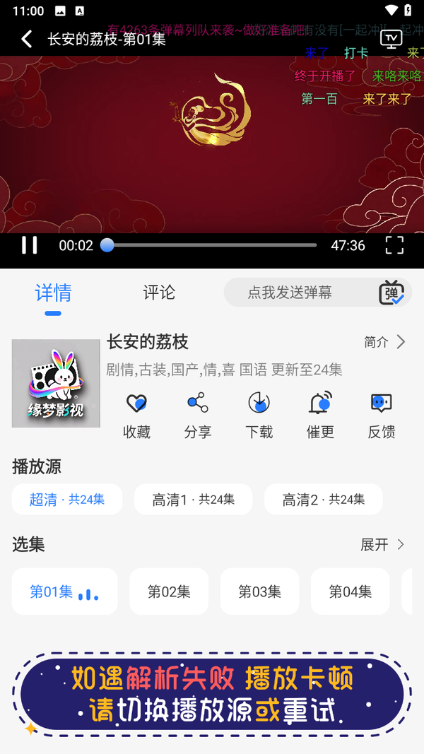 2、接下来随意播放一部剧集,此处小编以《长安的荔枝》为例。