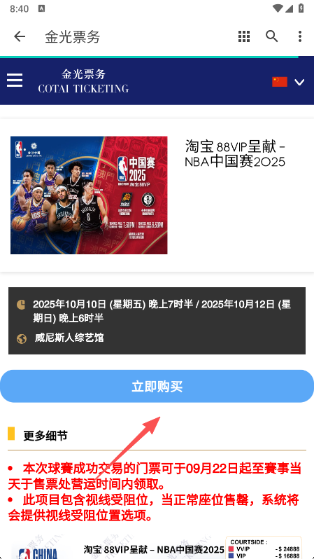 2、您可以下翻找到想要购买的演出票,点击立即购买
