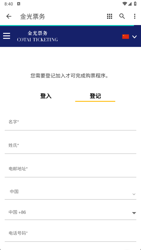 1、在本站打开并安装金光票务,进入首页后会发现需用户登录账号才能使用,这一步先不用管。