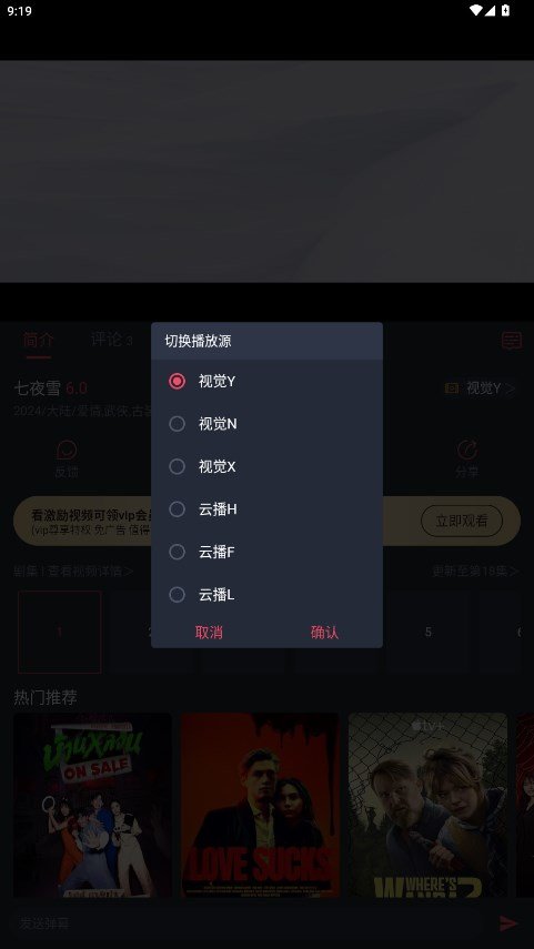 2. 点击后会自动加载播放,若出现卡顿或加载失败的情况,可切换播放源。