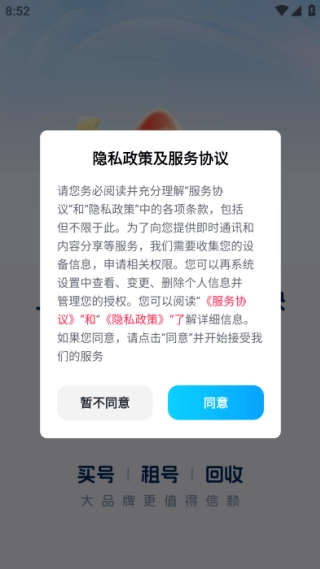 1、当开始进入软件时,同意隐私政策和服务协议是至关重要的,若不同意则无法进入。