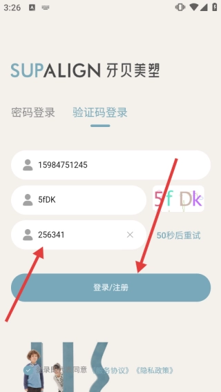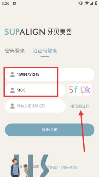 获取短信验证码后输入到指定位置,确认同意相关条款,再点击【登录/注册】按钮即可结束流程。