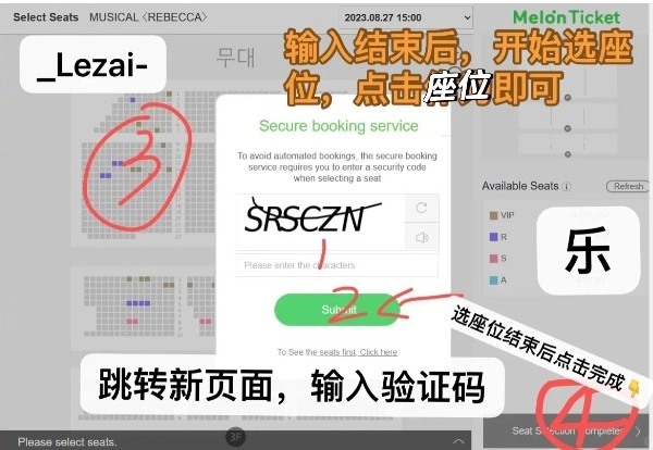在进入选票环节前,请先填写验证码;完成输入后,您可以直接点击座位来确定选择。需要注意的是,不同座位对应的价格会在右侧清晰标注。