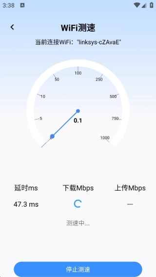 在进行网络速率检测时,系统会清晰呈现上传速率与下载速率的具体数值,帮助用户直观掌握当前网络的实际运行状况。
