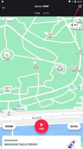进入跑步记录页面后,点击右上角的【设置】图标,进行个性化设置。