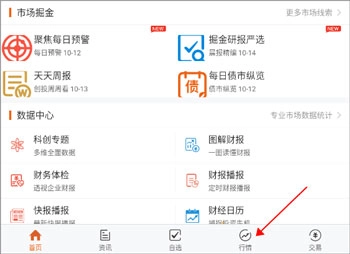 先打开,进入之后,点击行情界面。
