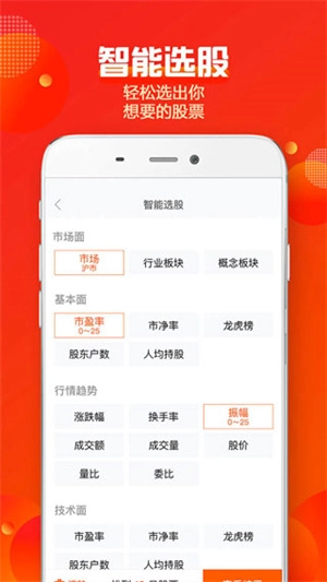 智能选股:搭载自适应选股模型,支持一键筛选出符合条件的股票,让选股变得简单轻松