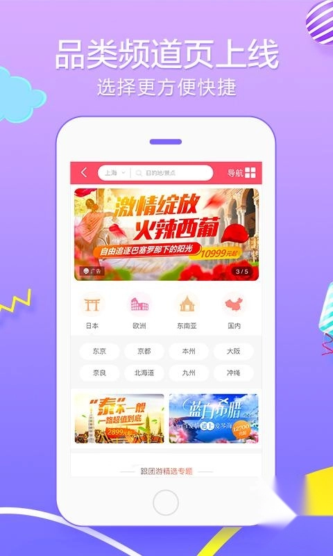 涵盖多种热门旅游线路,包括出境游、国内游、周边游,总有一款适合您。