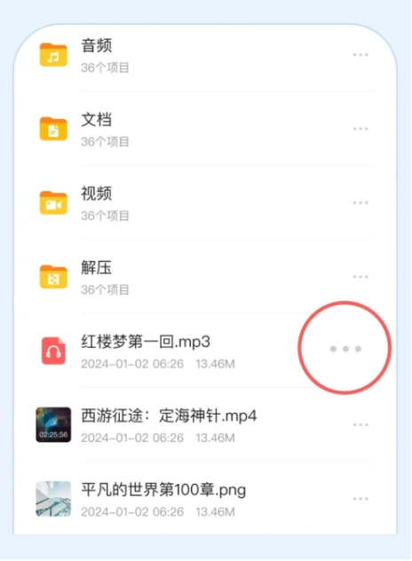 打开文件夹管家,挑选想要压缩的文件,接着点击更多按钮。