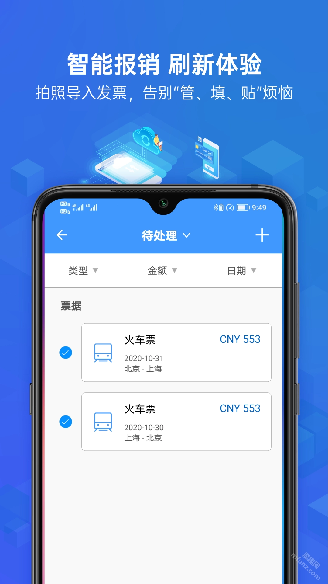 极简报销:发票拍照一键识别,无需贴票,进度实时掌控。