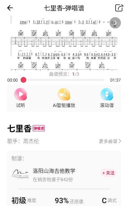 我们可以点击“歌手”或者“制谱师”来查看吉他谱。