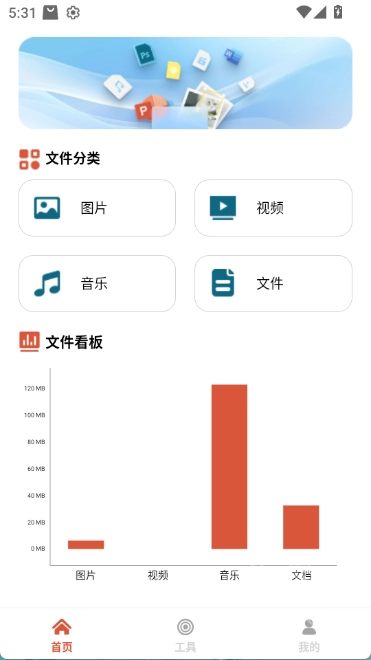 文件分类:极速文件助手可自动识别手机里的图片、视频、音频与文档文件并进行分类,帮助用户快速定位到需要的文件。