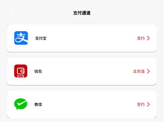 支付授权有支付宝、钱包、微信三种选择。
