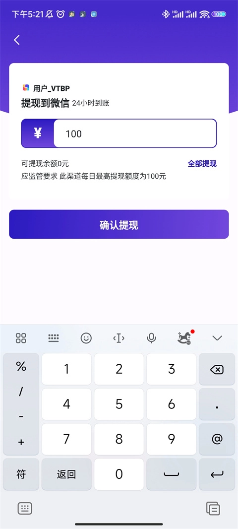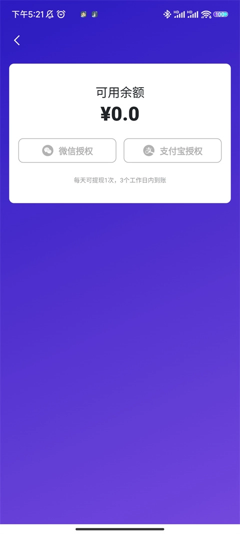 注意啦:单次最高可提现100元,每日仅限提现一次,资金会在三个工作日内到账哦!