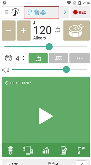 打开调音器,开启或关闭节拍器,并对声音、闪光灯、振动以及可视节奏的组合进行设置。