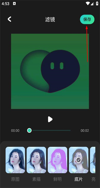 确认滤镜效果后,点击页面右上角的保存按钮,即可完成添加滤镜后视频的保存操作。