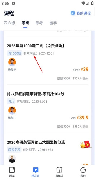 在考研课程列表里,浏览各类备考课程后,选择“2026肖1000题二刷”这一课程,即可进入其详情页面。