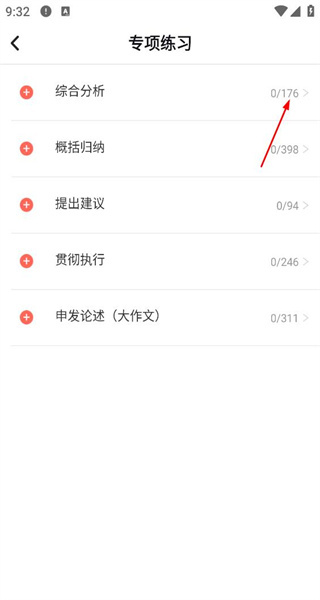 进入专项练习界面,浏览综合分析等练习类别,点击综合分析对应的选项进入筛选界面。