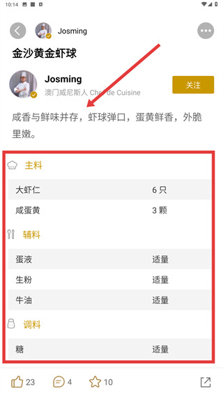 可以通过查看菜品详情页里的【主料】【辅料】【调料】清单,确认好需要用到的食材种类和具体用量,这样就能为接下来的烹饪工作做好准备了。