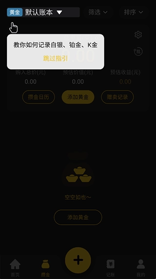 之后就能按照指引新建账本,用来实时记录你贵金属金融产品的收益状况