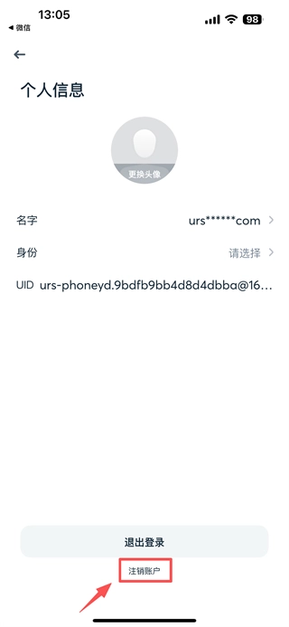 3、进入个人信息页面后,点击注销账户选项,即可跳转至注销风险提示页面。