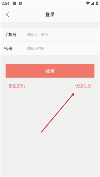 3、在登录页面找到并点击【快速注册】选项,即可进入注册页面。