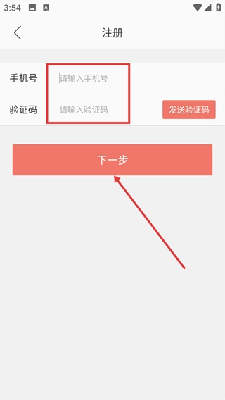 4、在注册页面填写手机号并输入验证码,接着点击【下一步】按钮,即可完成账号注册流程。
