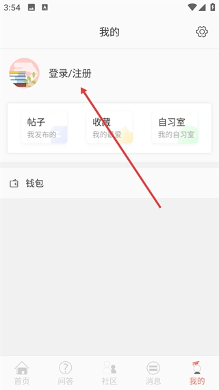 2、进入个人中心页面后,点击【登录/注册】选项,即可跳转至登录页面。
