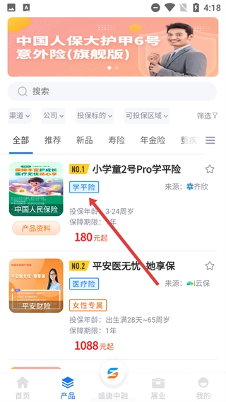 2、在产品页面找到“小学童2号Pro学平险”并点击,进入该产品的详情页面。