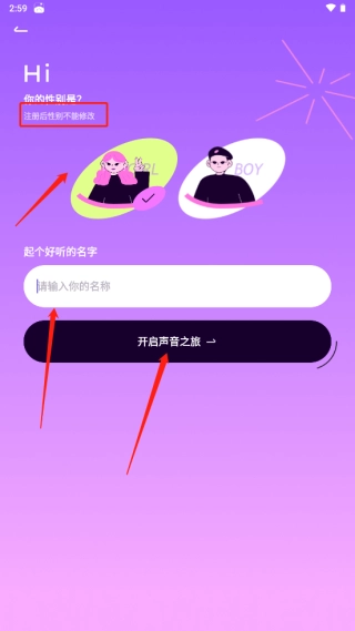 2、取一个名字点击开启声音之旅即可