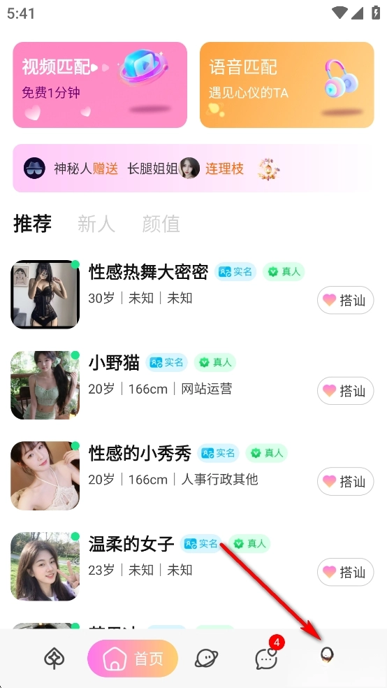 进入软件后点击右下角人物按钮