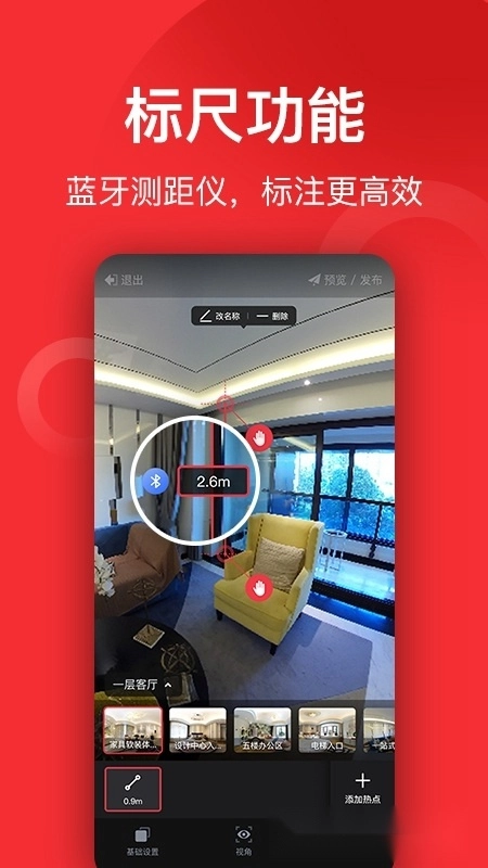 3.标尺功能支持蓝牙测距仪,尺寸标注更高效;