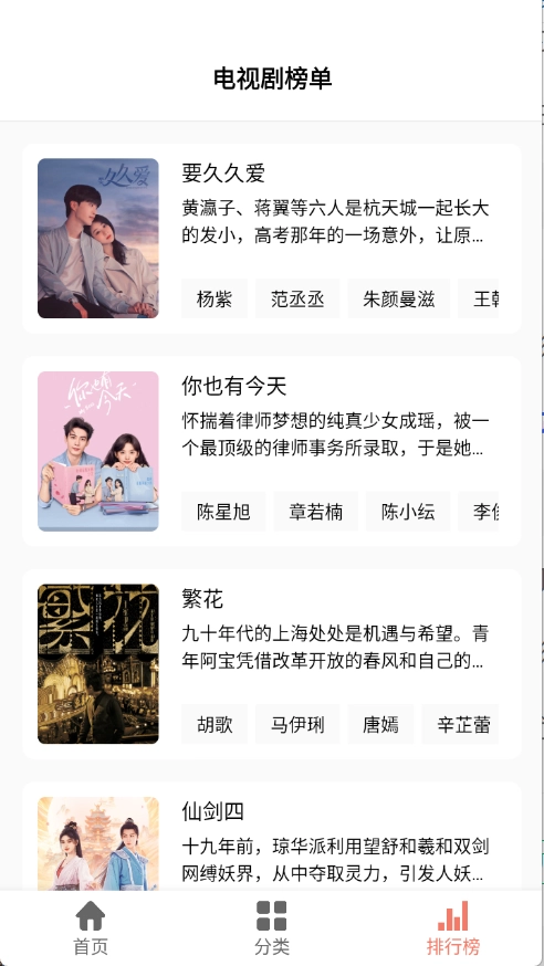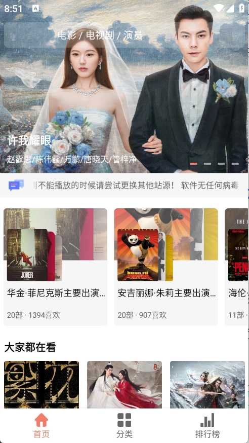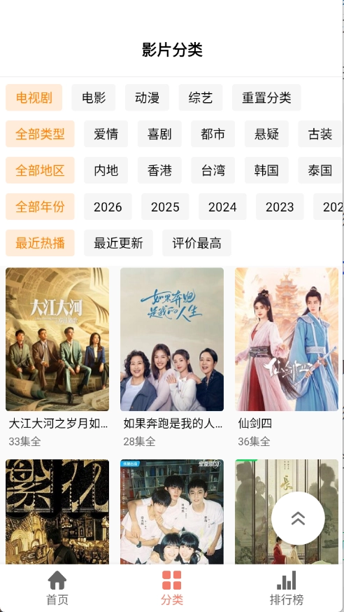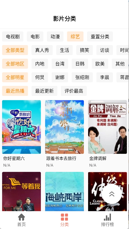 2、分类板块对影视内容做了细致划分,涵盖了电视剧、电影和综艺等不同类型。