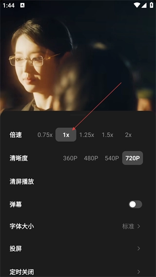 4、在播放设置选项中,能够对视频倍速进行调整(例如0.75倍、1倍等)。
