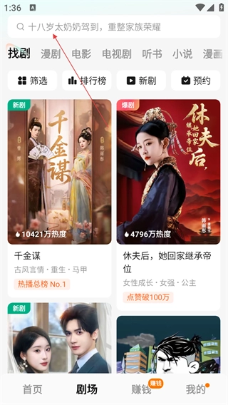 1、在剧场页面的搜索框中输入剧集名称,随后进入搜索结果页面。