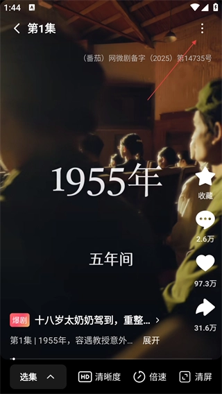 3、在剧集播放页面,点击右上角的三点图标,即可打开播放设置选项。