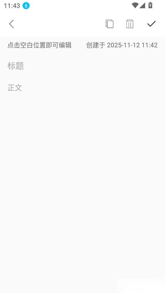 4、填写笔记的标题与内容详情后,点击右上角的“√”形图标按钮,即可一键完成保存操作。
