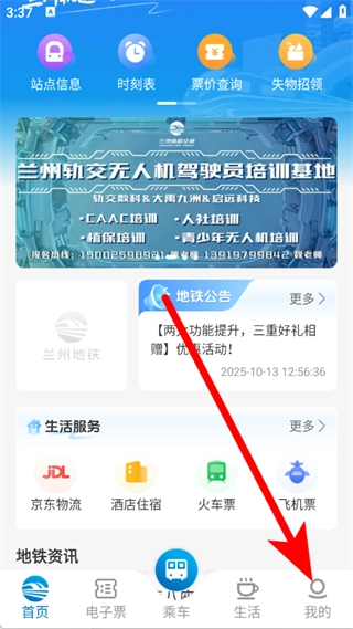 1、打开兰州轨道交通,在首页点击底部我的。