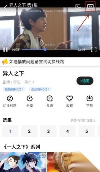 1、打开番茄影视大全应用,找到你想看的电视剧、电影或综艺节目,然后点击页面右上角的投屏按钮。