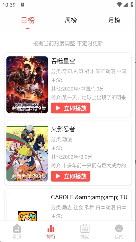 4、排期提供每天动漫更新情况。