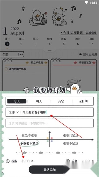 2、在此处填写待办事项与备注信息,也能够设置具体的时间。