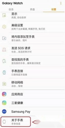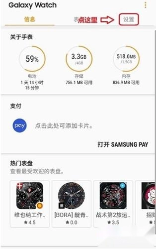 1. 启动Galaxy Watch后,点击右上角的设置图标