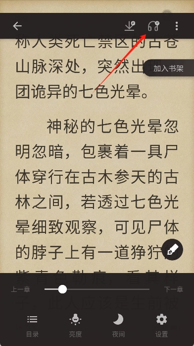 5、还具备听书功能,您可在阅读选项里开启听书模式,小说便会以语音形式播放。