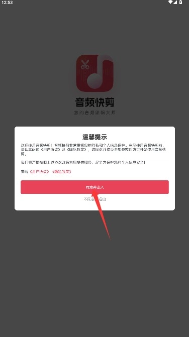 打开应用后,请仔细阅读用户协议与隐私政策,确认无误后点击同意按钮即可进入应用。