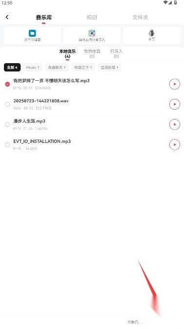 3、可以从本地音乐库或者在线资源里挑选要进行编辑的音频文件,选好后点击下一步来确认导入操作。
